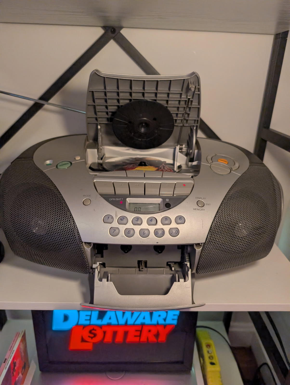 really good piece of tech, radio, cassette, and cd player. all for only 6 bucks at goodwill! i use this as my day-to-day cd player