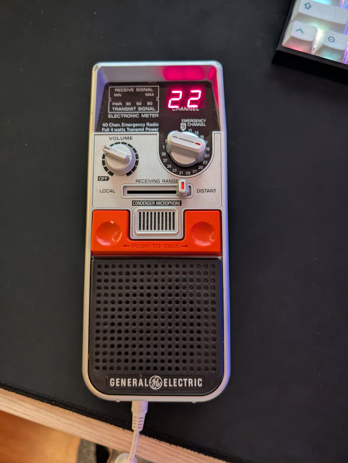 It's a CB radio, it needs an external antenna though so i haven't actually tested it. any 3.5mm jack antenna should work i think?