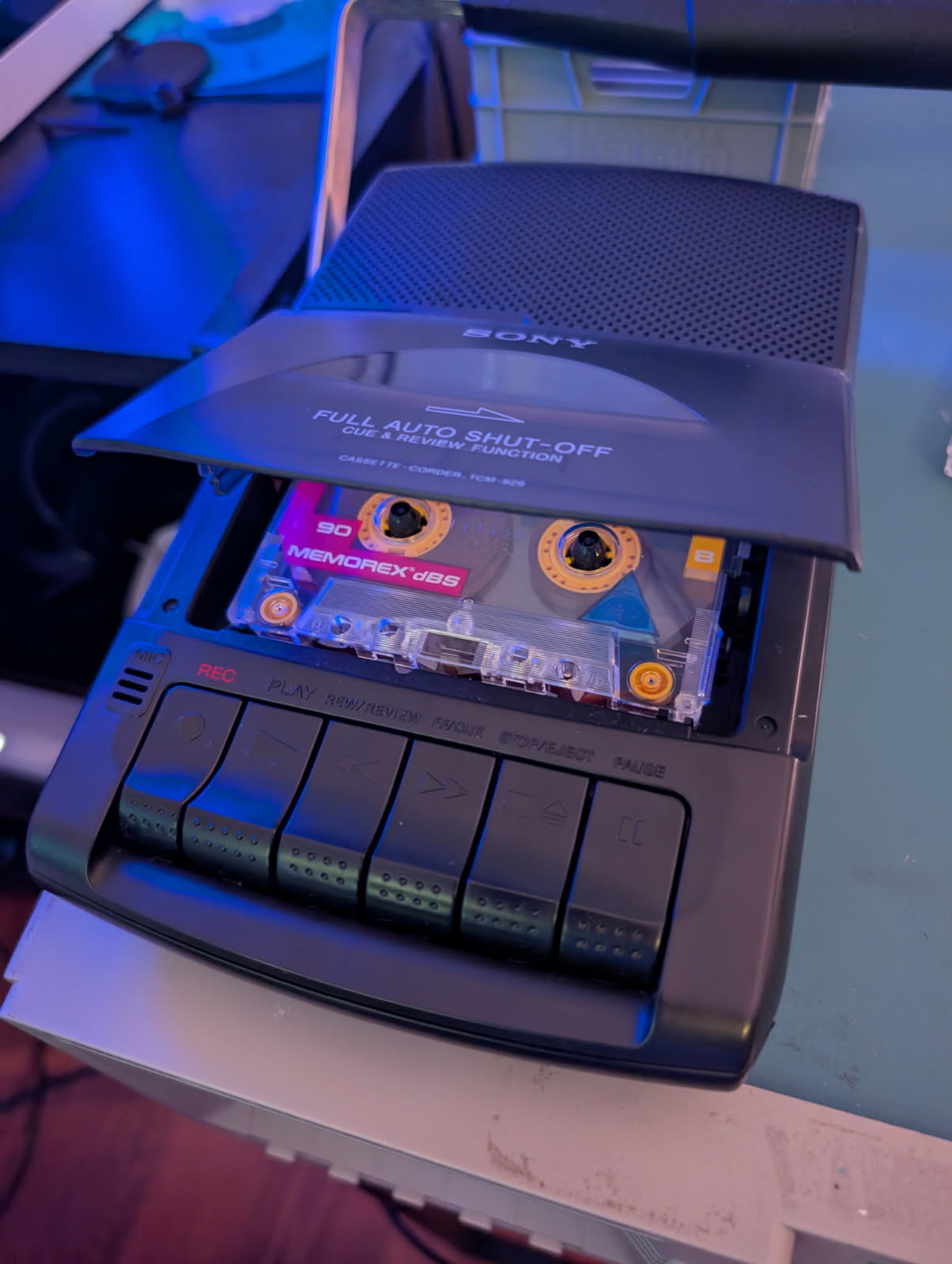 A really good but cheap shoebox cassette player and recorder, built in handle, speaker, and manual cue/review seeking. Sounds pretty good when you use the headphone jack to some headphones or a decent pair of speakers, and the built-in speaker is just eh.. Not an audiophile either though so I'm not too picky